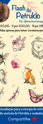 Trabalhos para arrecadação de verba para pagamento do tratamento do meu cachorro, Petrúkio. Ele passou por uma cirurgia de remoção da vesícula em setembro e teve complicações pós operatórias. Seguimos fazendo exames, hoje ele está bem mas ainda precisa do tratamento. Todo dinheiro arrecadado destes flashes serão dedicados inteiramente a ele.
